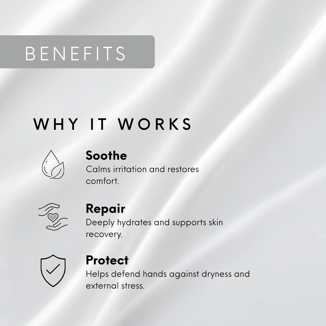 Jeder Inhaltsstoff wurde sorgfältig ausgewählt, um Ihren Händen weiche, gesunde und gepflegte Haut zu verleihen – ohne aggressive Chemikalien oder unnötige Zusatzstoffe.